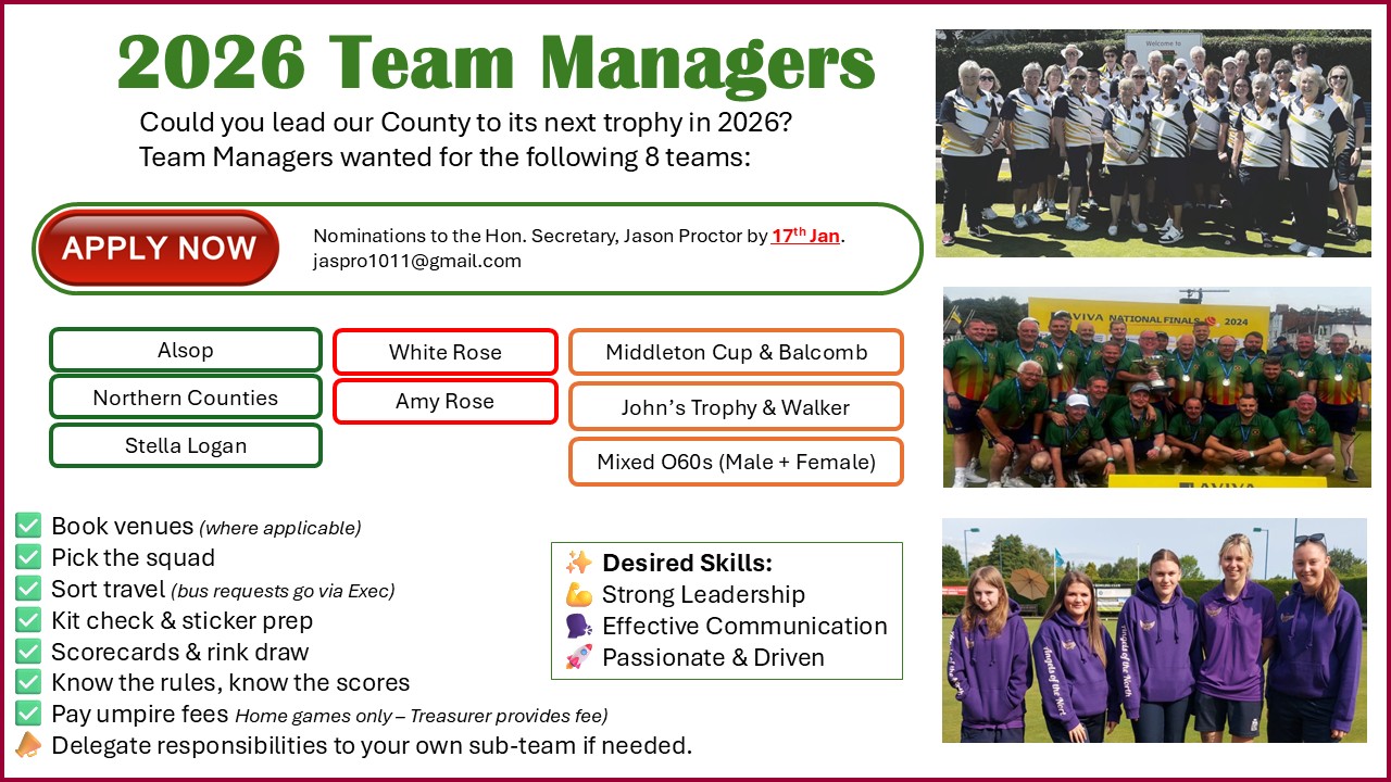 Appy to: County Secretary, Jason Proctor (jaspro1011@gmail.com)